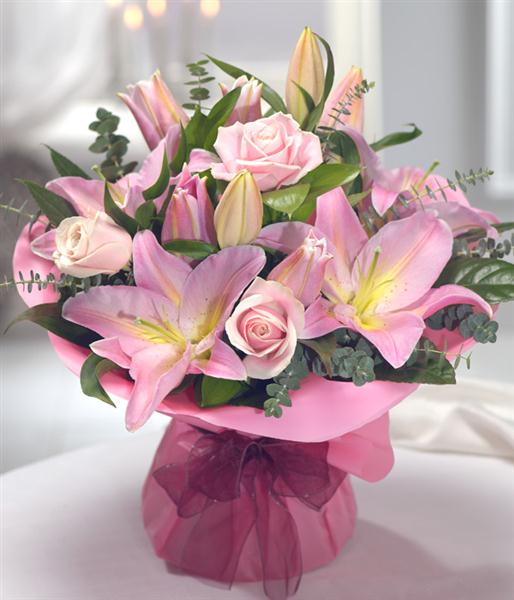 Simply beautiful pink Roses and Lilies exquisitely arranged and perfectly presented. A treat, delivered to someone very special, a truly gorgeous bouquet.