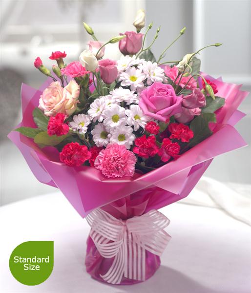 Send your love with this pretty delicate pink Rose and Carnation aqua pack bouquet presented in water for instant display!