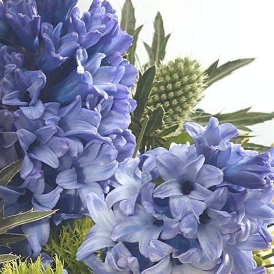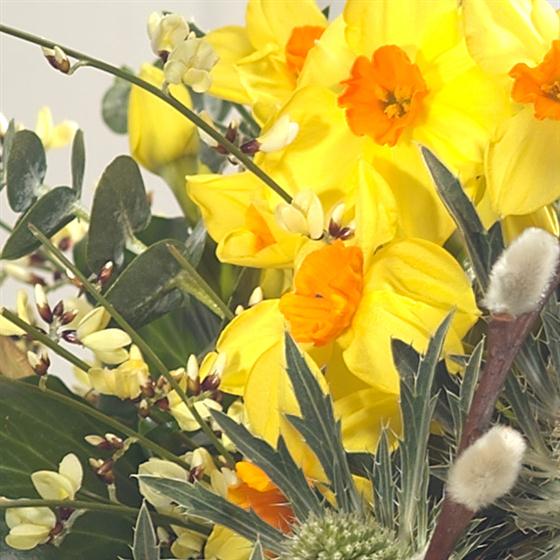 Bold and beautiful, this flower basket is a must have this spring. Fabulously fragrant purple Hyacinth zing alongside cerise Germini, purple Anemone and Tulips. Yellow Paperwhite Narcissi add that all important touch of sun.