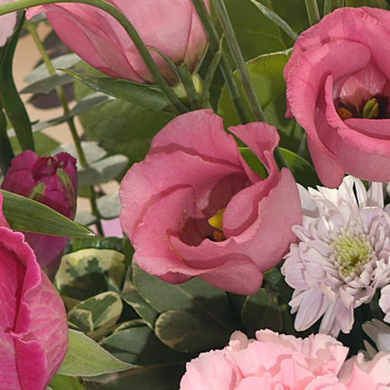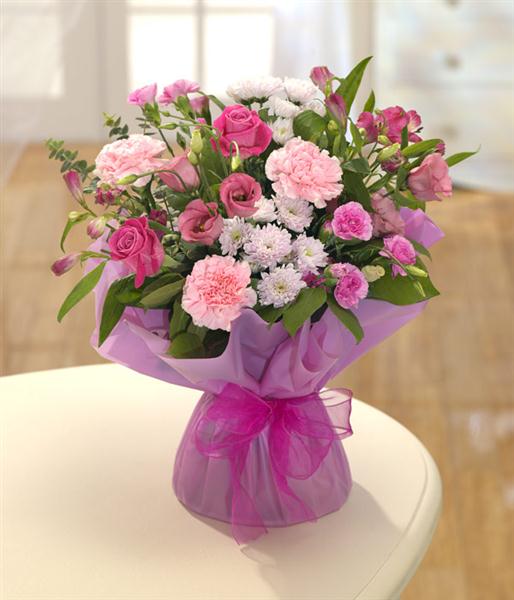 Soft and rich pink flowers featuring Roses, Carnations and Lisianthus beautifully presented, sitting in water, for that very special delivery.