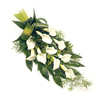 A classic and natural sheaf of Calla Lilies and complementary foliage tied with a natural bow. Approximate Size: 64cm (24").