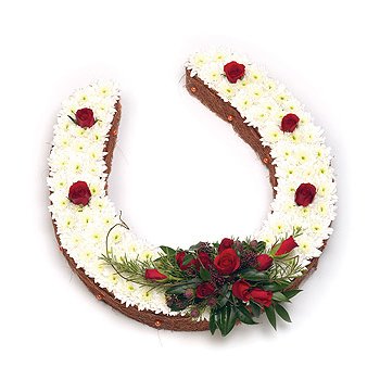 Based Chrysanthemum wreath with red spray of red Roses and complementary foliage. Size: Height - 50cm (19.5") Width - 48cm (20").