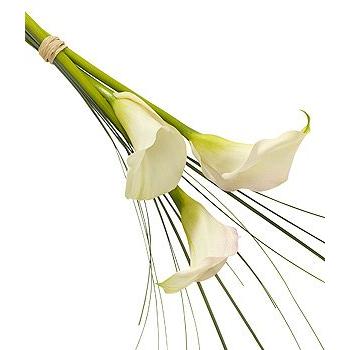 White Calla Lilies, Bear Grass and Tied with Natural Raffia. Very contemporary.