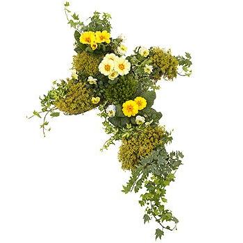 (Seasonal Colours...may vary) Gold Primula, Yellow Primula, Cream Viola Plant, Gold Thyme Plant, Green Thyme Plant, Variegated Ivy, Opiflor Cross Memorial Planter Ponderosa.